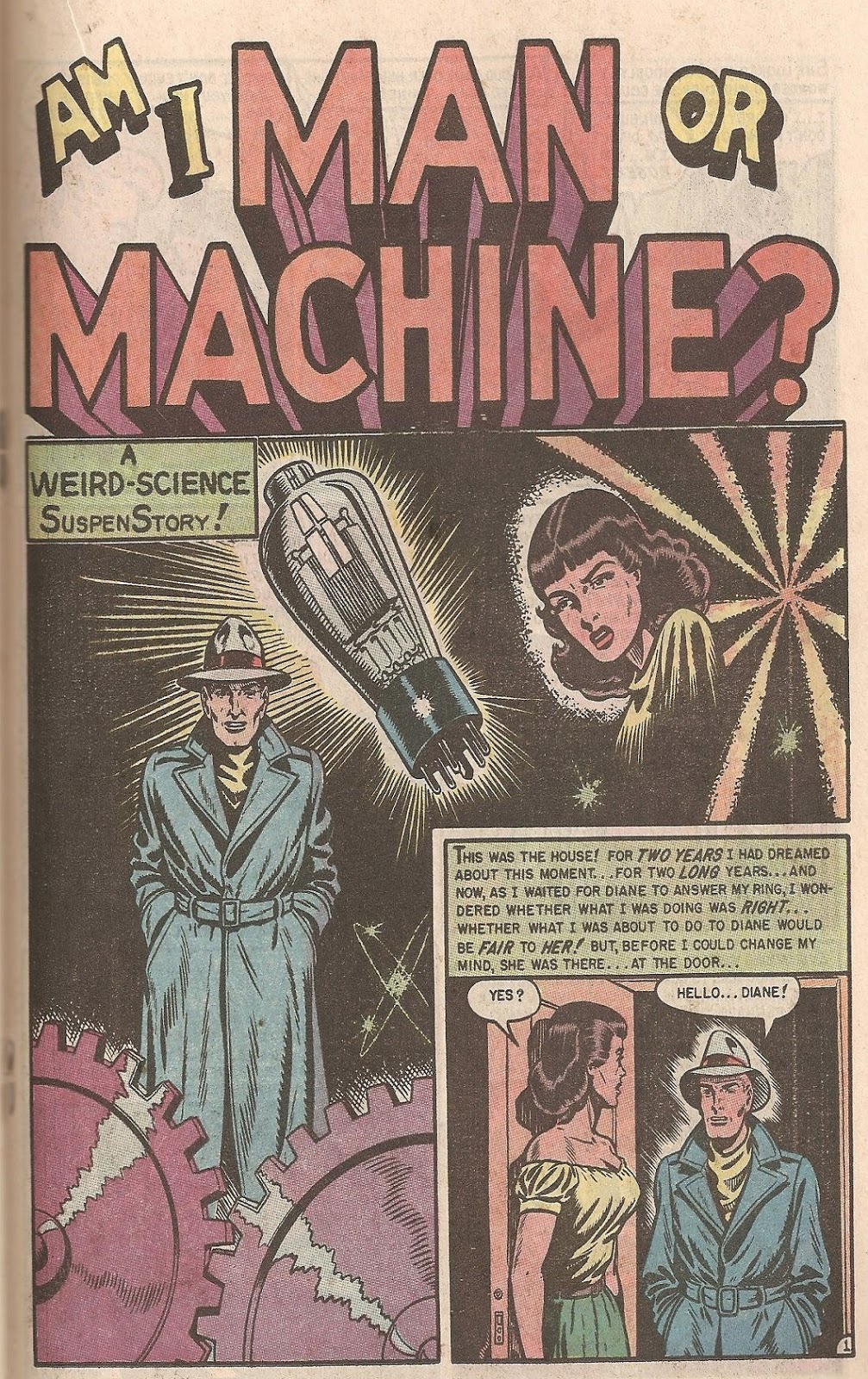 "Made of the Future" (the op "singular" link) really hedges its bets on where comics were at in the mid 1950s: one part romance, one part gothic-science horror.